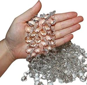 Kristall Kette Girlande Glas Perlen Klar (6 STK) – 1m Perlenvorhang Türvorhang mit 1,9cm Perlen Achteckig - Glaskristalle zum Aufhängen für Hochzeit, Weihnachten, Basteln, Deko, Lampen