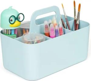 Kunststoff Putzmittel Organizer mit Henkel - 25x15.5x11 cm Mehrzweck-Korb für Bad, Schlafzimmer, Waschmittel, Make-up, Bastelsachen - Tragbarer Aufbewahrungskorb - Blau