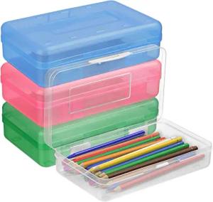 Kunststoff Stifte Box (4 Stk) – L20xB11,5xH5,5cm Durchsichtige Boxen mit Deckel - Bunte Boxen Aufbewahrung Groß – Aufbewahrungsbox als Pinselbox Schule, Buntstifte, Schreibwaren
