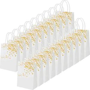 Papiertüten mit Henkel & Goldenen Herzen (20er Pack) - Geschenk Tüten L16 x H22 x B8 cm - Geschenktüten mit Henkel für Geburtstage, Hochzeit, Baby-Partys Papiertüten mit Henkel Weiß