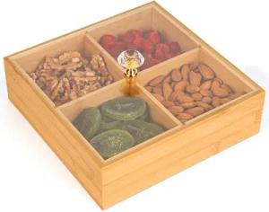 Quadratische Serviertablett aus Holz mit Deckel - Dekorative Aufbewahrungsbox mit 4 Fächern & Deckel - 22 x 22 cm - Mehrzweck-Teebox Holz Aufbewahrung für Andenken, Schmuck, Bastelbedarf