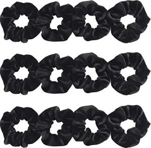 Schwarze Haarbänder aus Samt (12er Pack) - Schwarze Haarbänder für Frauen mit Glattem, Welligem, Lockigem, Langem, Kurzem, Dickem oder Feinem Haar - Elastische Haarbänder