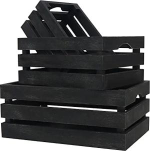 Schwarze Kisten mit Griffen (3 Stück) – rustikale dekorative Holzkisten für klein, mittel und groß – natürliche Kiste, stapelbar für Aufbewahrung und Dekoration im Innenbereich