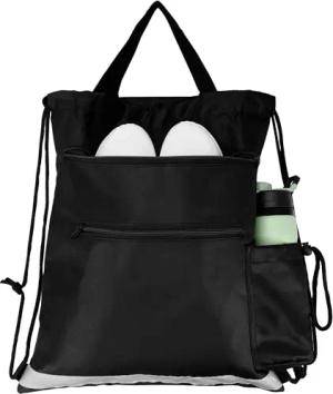 Sportbeutel - Turnbeutel mit Kordelzug - Wasserabweisender Beutel - Wasserfeste Kordeln - Reißverschluss und Taschen - Turnbeutel Damen - Turnbeutel Herren - Schwarz