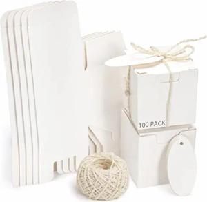 Weiße Pappschachteln mit Deckel (100 Stk) - 5 x 5 x 5 cm - Quadratische Kraftpapier Box mit Juteschnur & Tags für Basteln, Party & Hochzeit Gastgeschenke - Leicht Aufzubauen