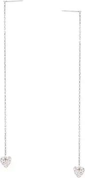 Durchzieh-Ohrringe aus 925 Silber mit Zirkonia-Steinen in Herzchenform