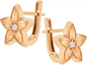 Golders Blumen Ohrringe aus 585 Rotgold mit Zirkonia, Echtgold Ohrhänger Damen