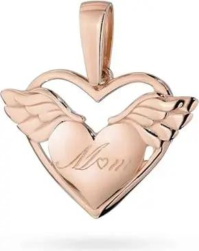 Golders Herzförmiger Anhänger Mom mit Engelsflügeln aus 585 Rotgold zum Muttertag