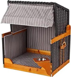 Hundestrandkorb - gestreift/anthrazit - PE schwarz - inkl. Schutzhülle