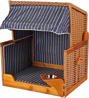 Hundestrandkorb - gestreift/blau - PE beige - inkl. Schutzhülle