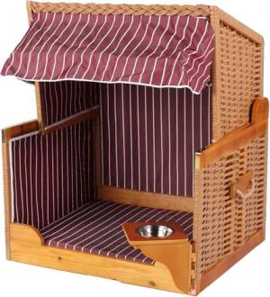 Hundestrandkorb - gestreift/rot - PE beige - inkl. Schutzhülle