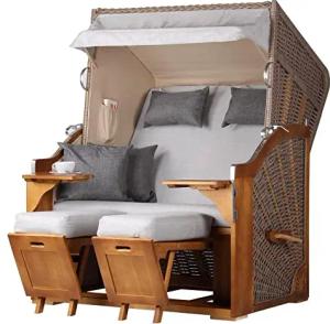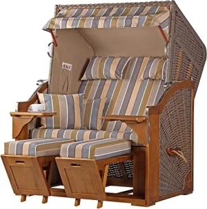 Strandkorb Komplettset: Schleswig Pinie Zweisitzer - PE Mokka - Modell 559