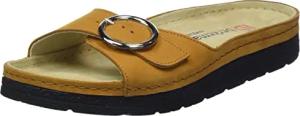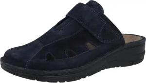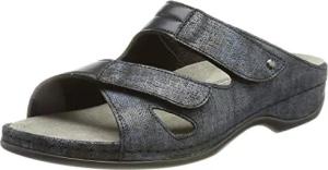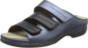Janna Bequeme Damen Pantolette Leder mit herausnehmbarem Fußbett, Stretcheinsätzen und Klettverschluss, Damenhausschuh Sandale