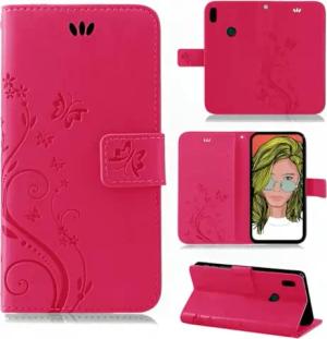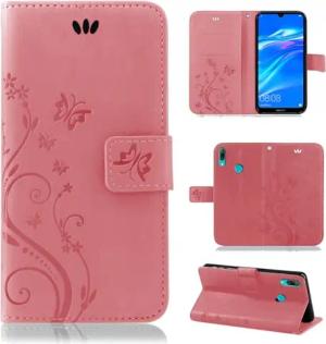 Hülle Kompatibel mit Huawei Y7 (2019) | Premium PU Leder Handyhülle Wallet Case für Y7 (2019) | Schutzhülle Blumen Klapphülle Handyhülle | Rosa