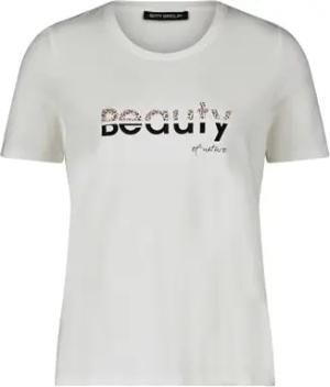 Damen Basic Shirt mit Placement 42, White/Beige