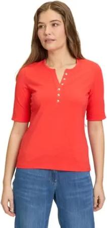 Damen Basic Shirt mit Knöpfen 40, Poppy Red