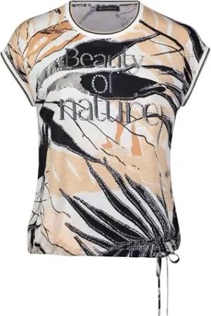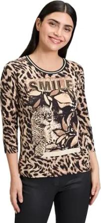 Damen Basic Shirt mit Print 46, Schwarz/Beige