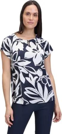 Damen Casual-Bluse mit Muster 40, Dunkelblau/Weiß