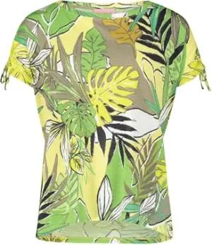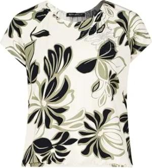 Damen Printshirt mit Gummizug 38, Beige/Dark Blue