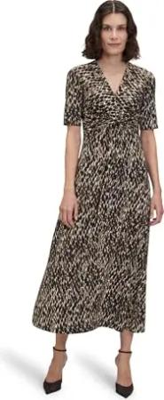 Damen Midikleid mit Raffung 46, Braun/Beige