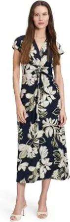Damen Midikleid mit Raffung 42, Dark Blue/Green