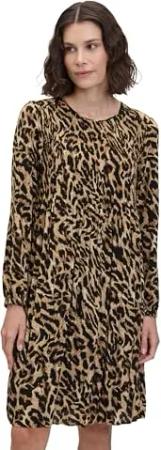 Damen Plisseekleid Langarm 38, Schwarz/Beige
