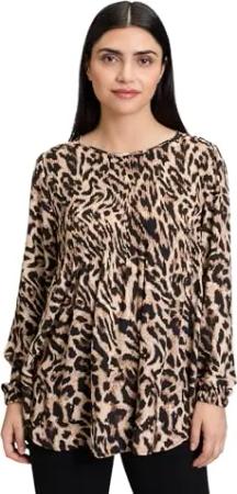 Damen Schlupfbluse mit Plissee 38, Schwarz/Beige