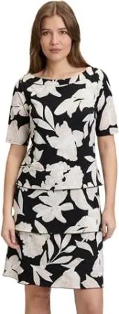 Damen Stufenkleid Kurzarm 36, Schwarz/Beige