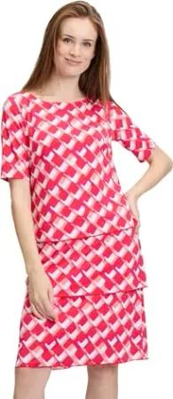 Damen Stufenkleid Kurzarm 42, Rot/Weiß