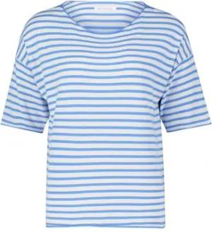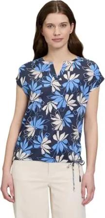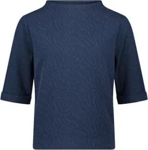 Damen Casual-Shirt mit Struktur M, Dunkelblau/Weiß