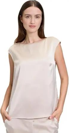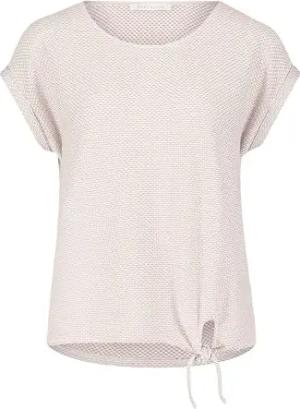 Damen Casual-Shirt mit Gummizug S, Weiß/Taupe