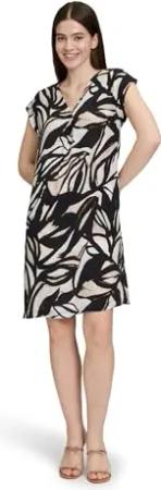 Damen Casual-Kleid mit Print 38, Black/Nature