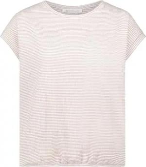 Damen Casual-Shirt mit Gummizug M, Weiß/Taupe