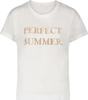 Damen Casual-Shirt mit Strass S, Weiß/Taupe