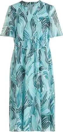 Damen Chiffonkleid mit Flügelärmeln 40, Petrol/Mint