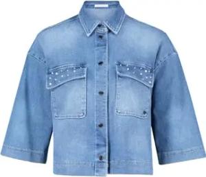 Damen Jeansjacke mit Perlen 44, Light Blue Denim