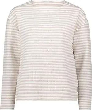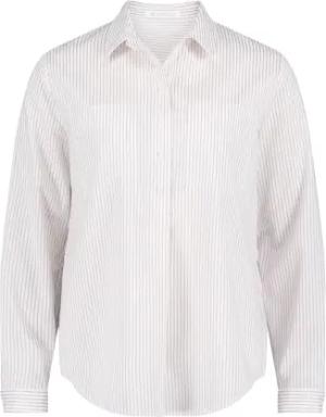 Damen Langarm-Bluse mit Streifen 38, White/Taupe