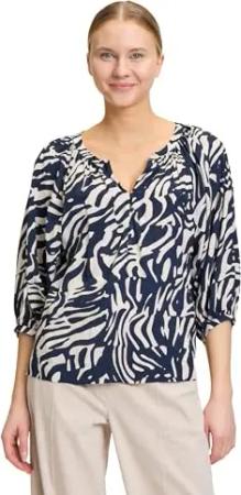 Damen Schlupfbluse mit Print 36, Dark Blue/Nature