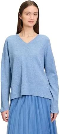 Damen Strickpullover mit V-Ausschnitt 40, Moonlight Blue Melange