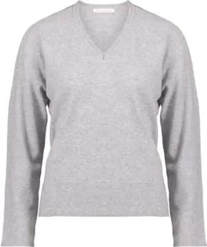 Damen Strickpullover mit V-Ausschnitt 36, Light Silver Melange
