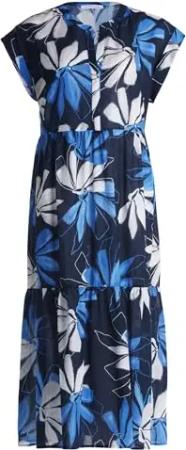 Damen Sommerkleid mit Stufenrock 46, Nature/Blue