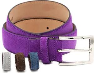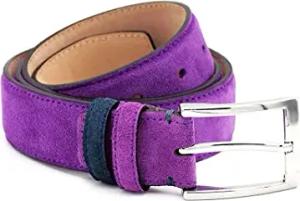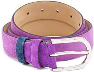 Leder – Gürtel für Herren und Damen aus 100% Veloursleder mit handgefertigtem Sattlerstich-Detail und einer zusätzlichen kontrastfarbenen Wechselschlaufe (Lila, 105 (Gesamtlänge 120 cm))