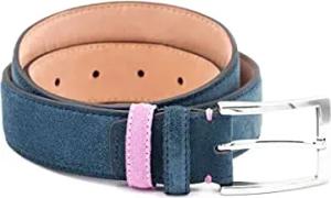 Veloursledergürtel für Herren und Damen aus 100% Leder mit handgefertigtem Sattlerstich-Detail und einer zusätzlichen kontrastfarbenen Wechselschlaufe (Helllila, 105 (Gesamtlänge 120 cm))