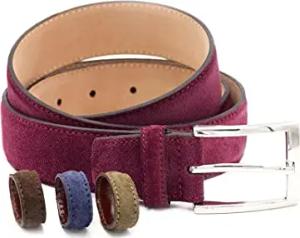 Veloursledergürtel für Herren und Damen in Blau, Safrangelb, Blau und weiteren Trendfarben mit drei zusätzlich kontrastfarenen Wechselschlaufen (Bordeaux, 95 (Gesamtlänge 110 cm))
