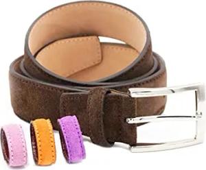 Veloursledergürtel für Herren und Damen in Blau, Safrangelb, Blau und weiteren Trendfarben mit drei zusätzlich kontrastfarenen Wechselschlaufen (Braun, 90 (Gesamtlänge 105 cm))