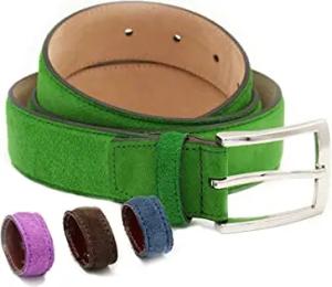 Veloursledergürtel für Herren und Damen in Blau, Safrangelb, Blau und weiteren Trendfarben mit drei zusätzlich kontrastfarenen Wechselschlaufen (Grün, 110 (Gesamtlänge 125 cm))