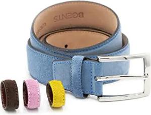 Veloursledergürtel für Herren und Damen in Blau, Safrangelb, Blau und weiteren Trendfarben mit drei zusätzlich kontrastfarenen Wechselschlaufen (Hellblau, 105 (Gesamtlänge 120 cm))