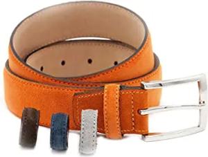 Veloursledergürtel für Herren und Damen in Blau, Safrangelb, Blau und weiteren Trendfarben mit drei zusätzlich kontrastfarenen Wechselschlaufen (Orange, 95 (Gesamtlänge 110 cm))
