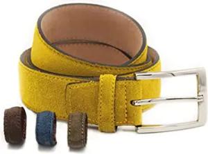 Veloursledergürtel für Herren und Damen in Blau, Safrangelb, Blau und weiteren Trendfarben mit drei zusätzlich kontrastfarenen Wechselschlaufen (Safrangelb, 105 (Gesamtlänge 120 cm))