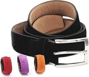 Veloursledergürtel für Herren und Damen in Blau, Safrangelb, Blau und weiteren Trendfarben mit drei zusätzlich kontrastfarenen Wechselschlaufen (Schwarz, 105 (Gesamtlänge 120 cm))